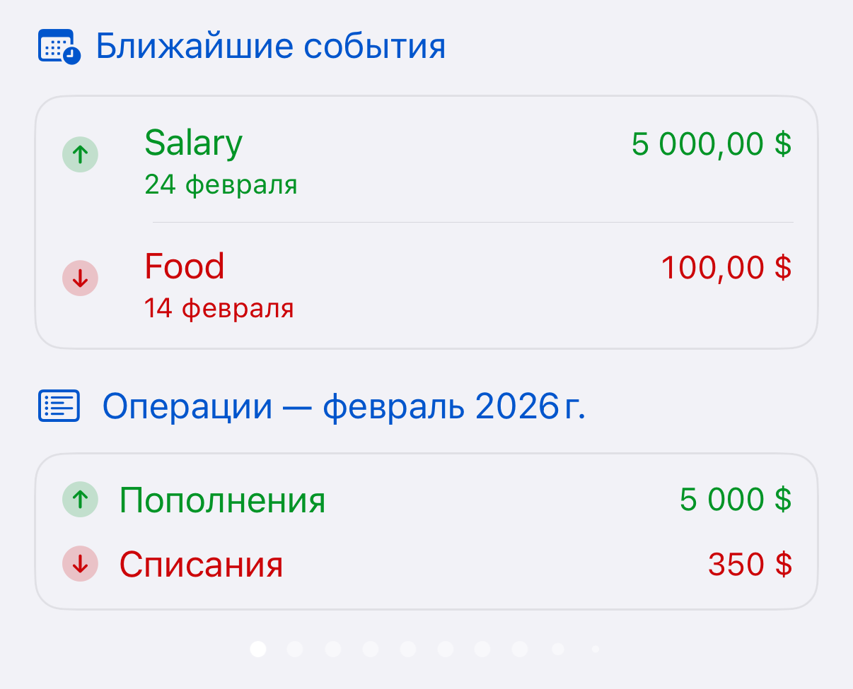 Планируйте будущие доходы и платежи. Отображение предстоящих операций делает управление вашими финансами простым и понятным.